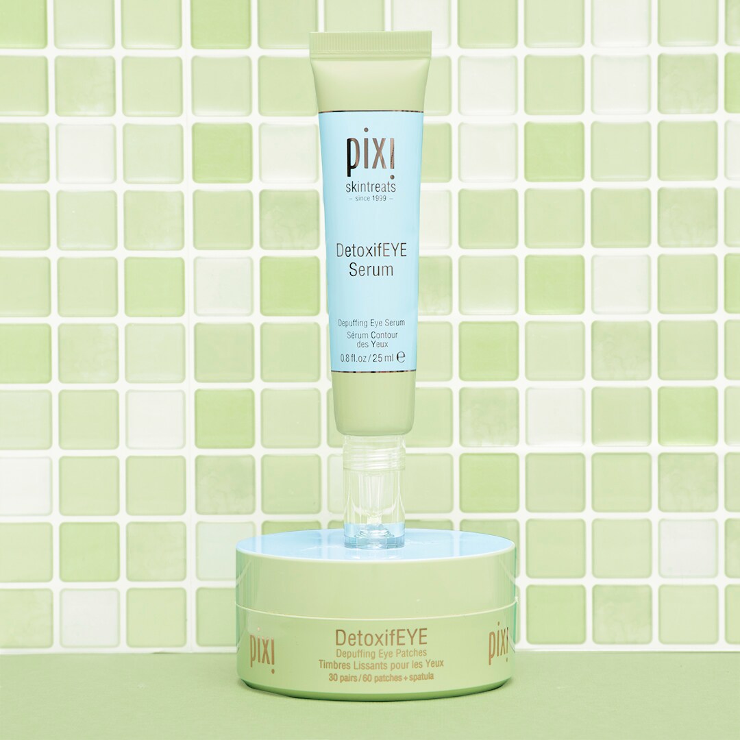 Les patchs hydrogel pour les yeux DetoxifEYE de Pixi réduisent instantanément les cernes et décongestionnent les yeux gonflés tout en hydratant et en apaisant la peau.