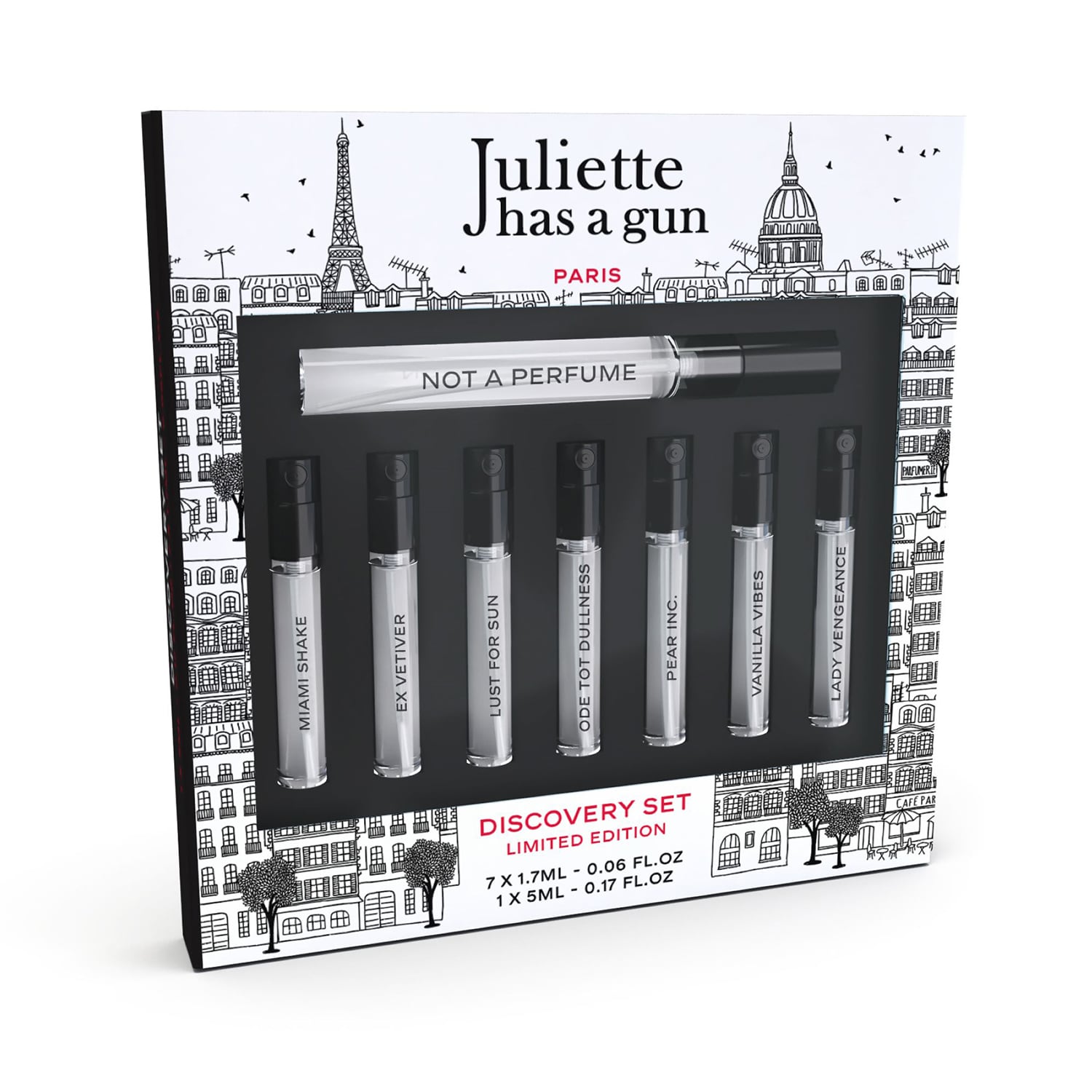 Vous trouverez dans ce coffret les armes de séduction les plus convoitées de JULIETTE HAS A GUN. Toutes fièrement fabriquées en France et conçues pour vous rendre confiante, sexy et fière de votre féminité. Ce nouveau kit découverte contient le fameux " NOT A PERFUME " 5ml, le tout nouveau " MIAMI SHAKE " et six coups de cœur de notre créateur.
