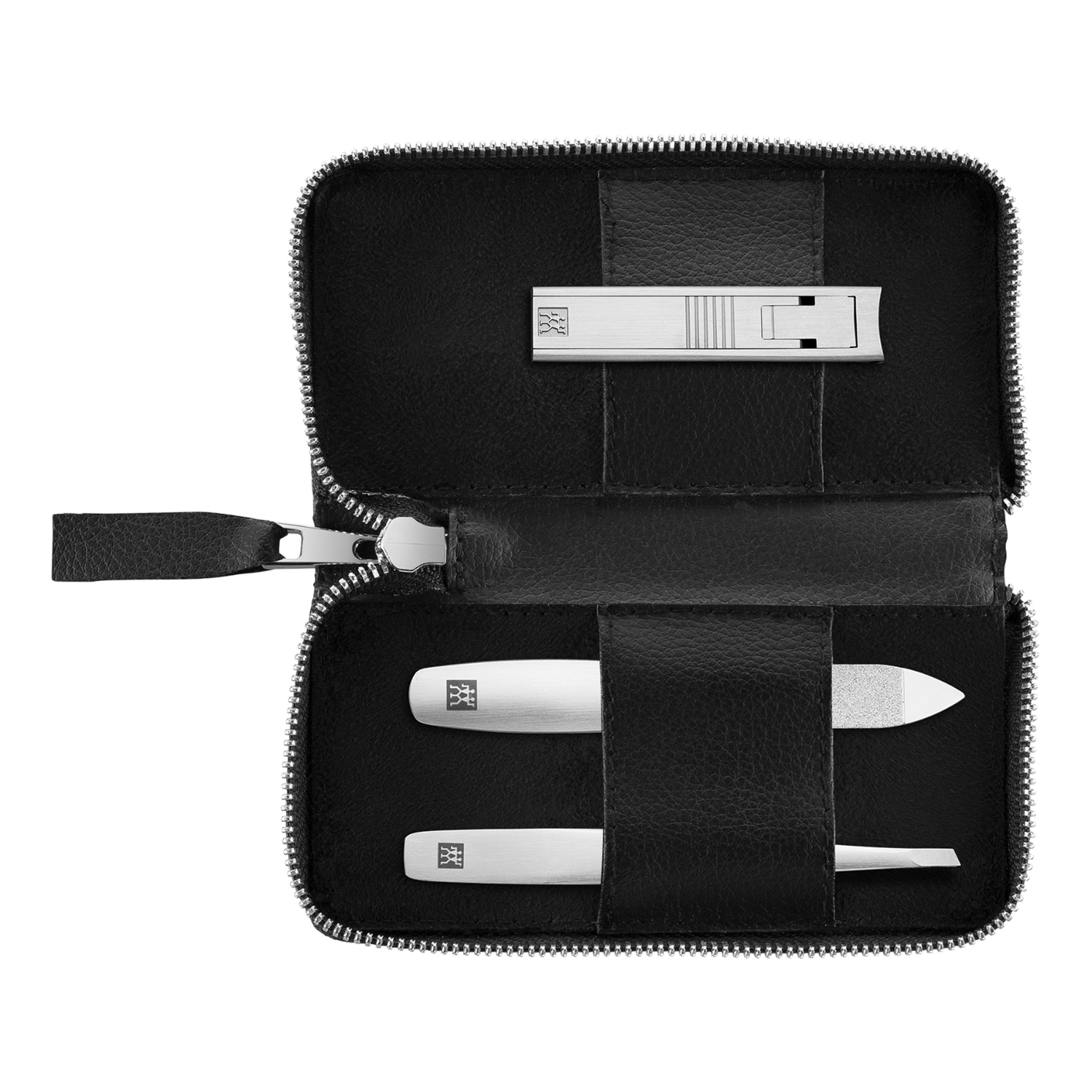 Lire la suiteLe set de soin professionnel Premium 3 pièces est peu encombrant, pratique et convient aussi bien au soin des ongles entre deux manucures qu’aux voyages. Dans l'étui en cuir de pomme noir vegan, équipé d'une fermeture éclair et d'un intérieur doublé de velours, on trouve un coupe-ongles compact, une lime à ongles Saphir et une pince à épiler à mors obliques. Les instruments sont donc rangés en toute sécurité. La fabrication de grande qualité en acier inoxydable satiné et une forme ergonomique parfaite des instruments garantissent une fonctionnalité et une durée de vie exceptionnelles tout en ayant un design attrayant.