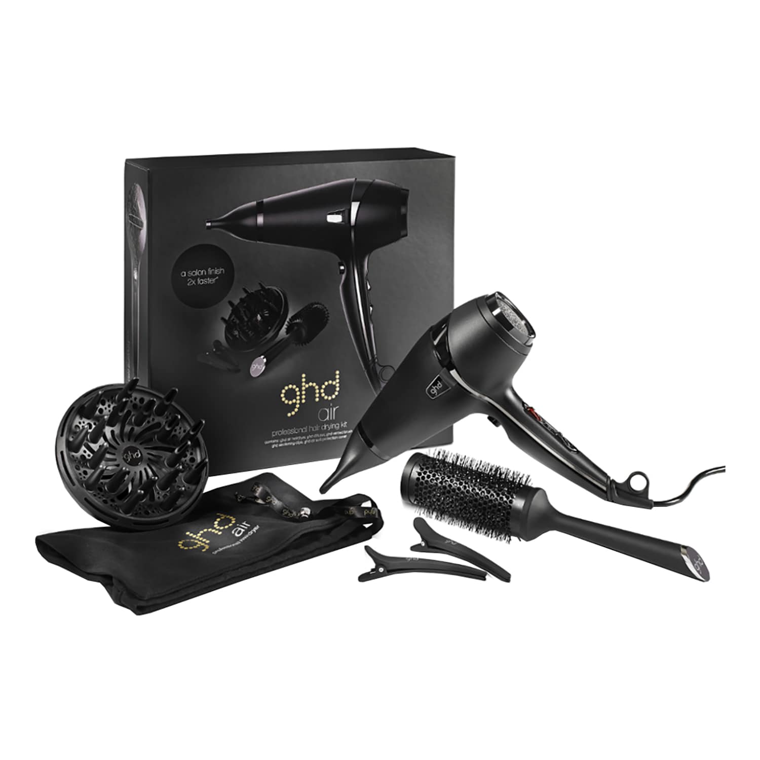 Ce coffret se compose du sèche-cheveux ghd air®, récompensé à de multiples reprises, ainsi que de tous les embouts indispensables pour créer des coiffures de pro. Son moteur puissant vous garantit un séchage ultrarapide, tandis que sa technologie ionique vous permet d'apporter de la douceur à vos cheveux 2 fois plus rapidement*