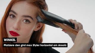 Entdecke den ghd max Styler, der professionelle, breite ghd-Glätter mit Dual-Zone Technologie und 70% größeren Platten*, der glatte und geschmeidiges Haar ohne extreme Hitze garantiert. Mit den 4,2 cm breiten Stylingplatten und zwei Wärmesensoren der neuen Generation sorgt das ghd max Glätteisen für eine optimale Hitzeverteilung. Es stylt langes, dickes und lockiges Haar in der Hälfte der Zeit.** Die optimale Stylingtemperatur von 185 °C wird gleichmäßig vom Ansatz bis zu den Spitzen beibehalten, damit Du erstklassige Ergebnisse erreichst, ohne die Qualität Deines Haares zu gefährden. Genieße schnelle und perfekte Frisuren mit dem breiten Glätteisen von ghd. Das Design des ghd max Styler sorgt für eine optimale Hitzeübertragung von den Platten in das Haar beim Glätten oder Locken, für 80% mehr Glanz*** und bis zu 2x weniger Frizz*** für dauerhafte Ergebnisse wie im Salon. Der ghd max Haarglätter überzeugt durch seine glatten, konturierten Stylingplatten, die mühelos durch das Haar gleiten. Er begeistert außerdem durch sein schlankes Design mit abgerundeten Kanten, mit dem Du sowohl spiegelglatte Styles als auch lockere, natürlich aussehende Wellen kreieren kannst. Der ghd max Styler garantiert ein hochwertiges, glattes Finish und langanhaltende Ergebnisse bei langem, dickem oder lockigem Haar. *Im Vergleich zum ghd original Styler **Juli’20. 80% von 140 Konsumenten stimmen zu, im Vergleich zu ihrem aktuellen Styler ***Technischer Test in einem Labor auf krausem Haar im Vergleich zu natürlich getrocknetem Haar