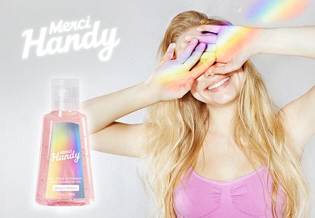 Bonjour. Wir sind Merci Handy. Unsere Wette ist verrückt, aber sie wird dein Leben verändern. 2014 haben wir hydroalkoholisches Gel, das unsexieste Produkt des Universums, in ein cooles Produkt, das gut riecht und Hände weich macht, verwandelt. Wow! Unser Rezept ist so einfach wie das eines Apfelkuchens: Ein paar Kumpels, ein wenig Kühnheit und viel Liebe. Wenn es fertig ist, fügen wir nur eine Prise Humor hinzu, weil wir es lieben, zu lachen. Du etwa nicht?